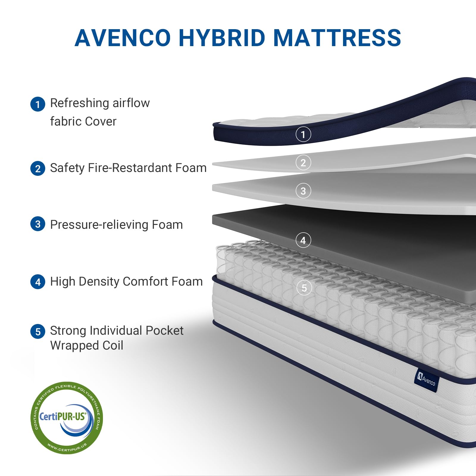 - Full Bed Mattress in a Box: Avenco hybrid full size mattress is vacuum-compressed and packaged in a compact box for easy delivery. Easy to setup and fits all kinds of full bed frames, even on the floor. Mattress is recommended 72 hours for air out and reshape