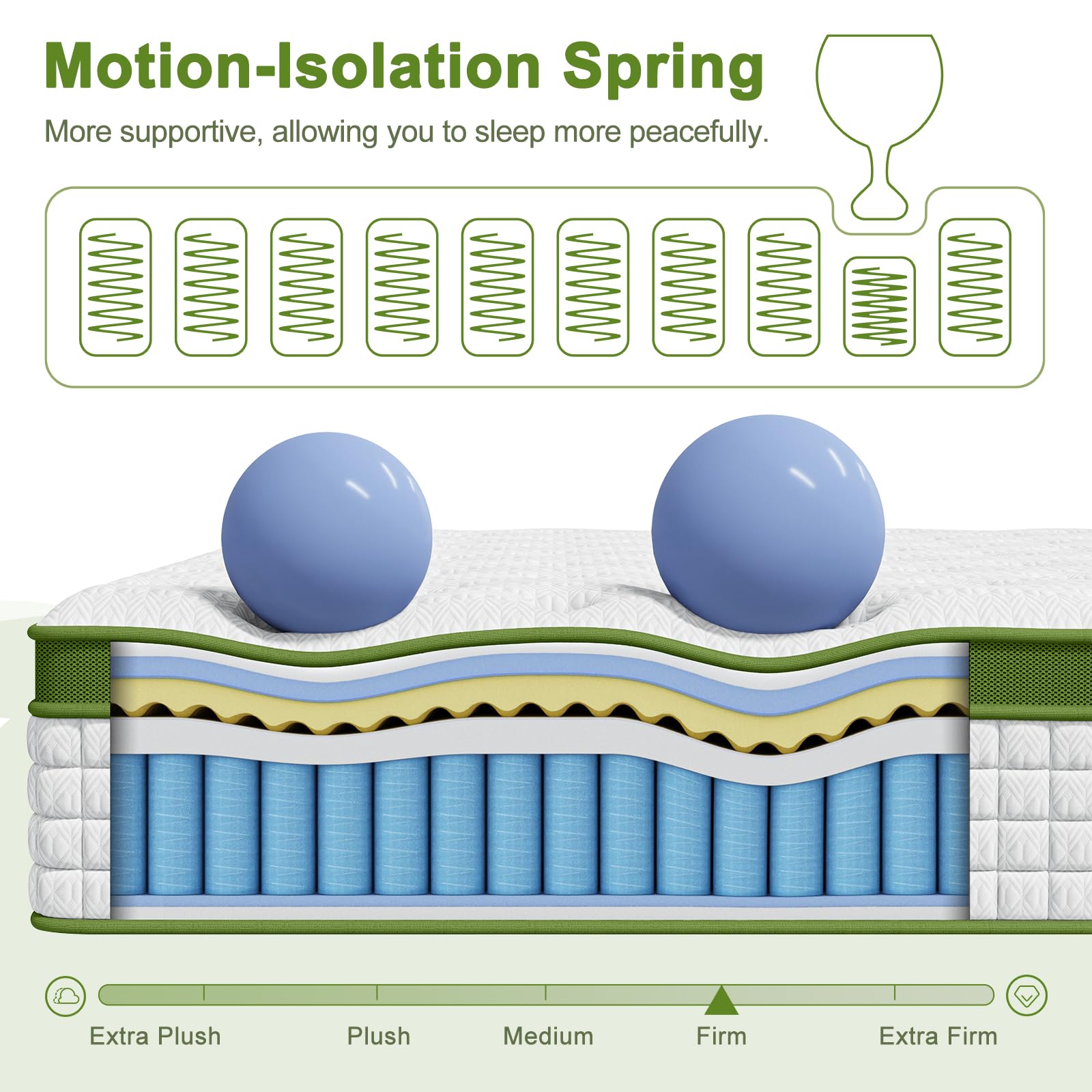 - Superior Motion Isolation – Engineered with 2.0mm+2.3mm individually encased coils, the firm king mattress minimizes motion transfer by 88%. Enjoy deeper, more restful sleep without disruption from a restless partner or playful pet.