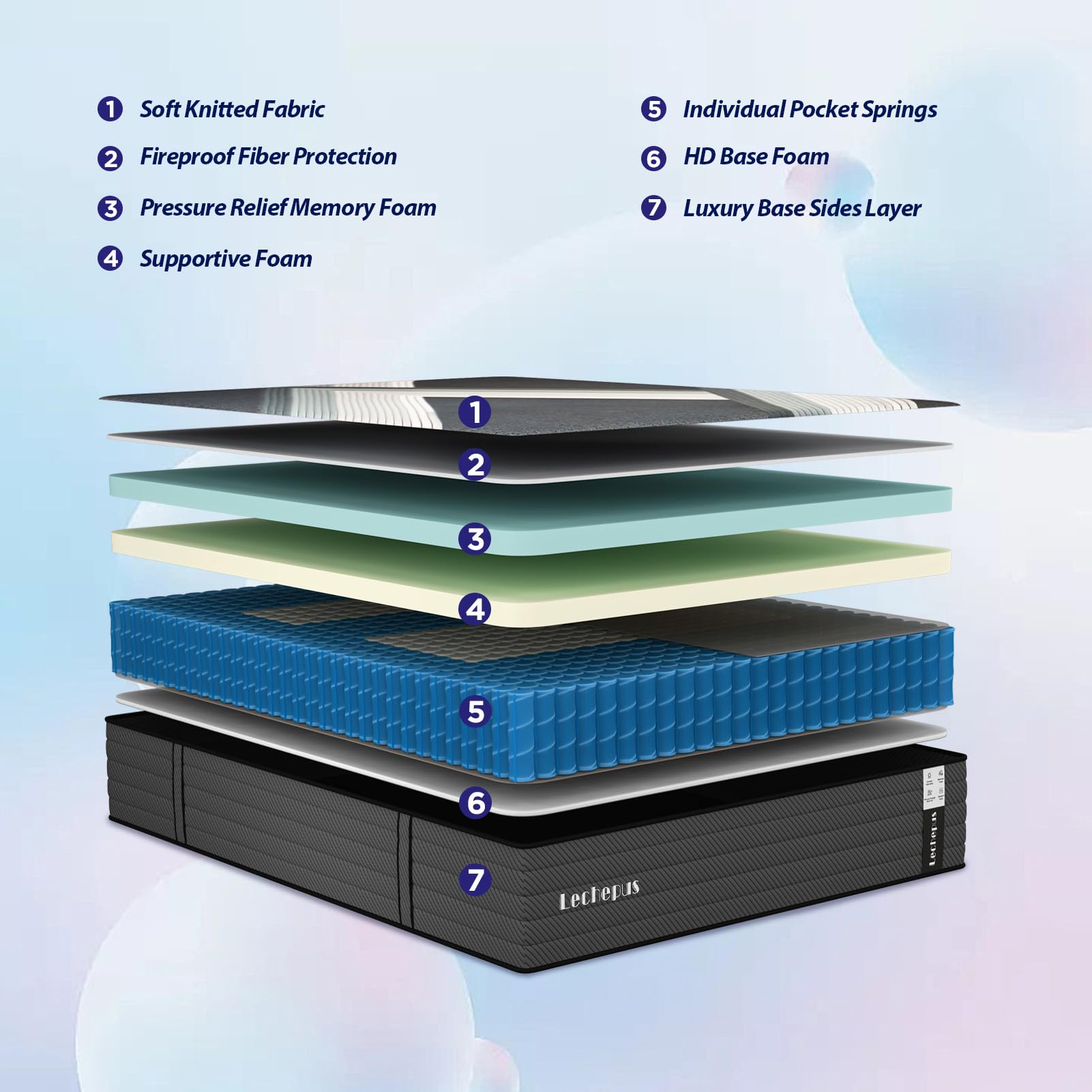 - Individual Pocket Spring: Supported by quality and stainless Individual pocket spring, each spring work independently to offer an all-over and average support to 5 parts of your body . Excellent shock-absorption and resilience, cater your vertebral well, help adjust and correct your sleeping posture.