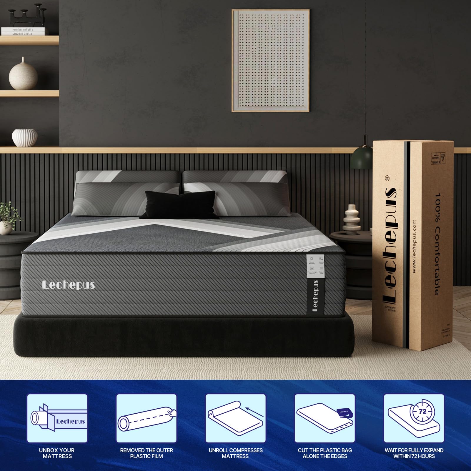 - Luxury Support System:King size mattress with Memory foam and pocket spring support system also provide more buffers for your body, help relieve back pain, greatly improve your sleeping quality