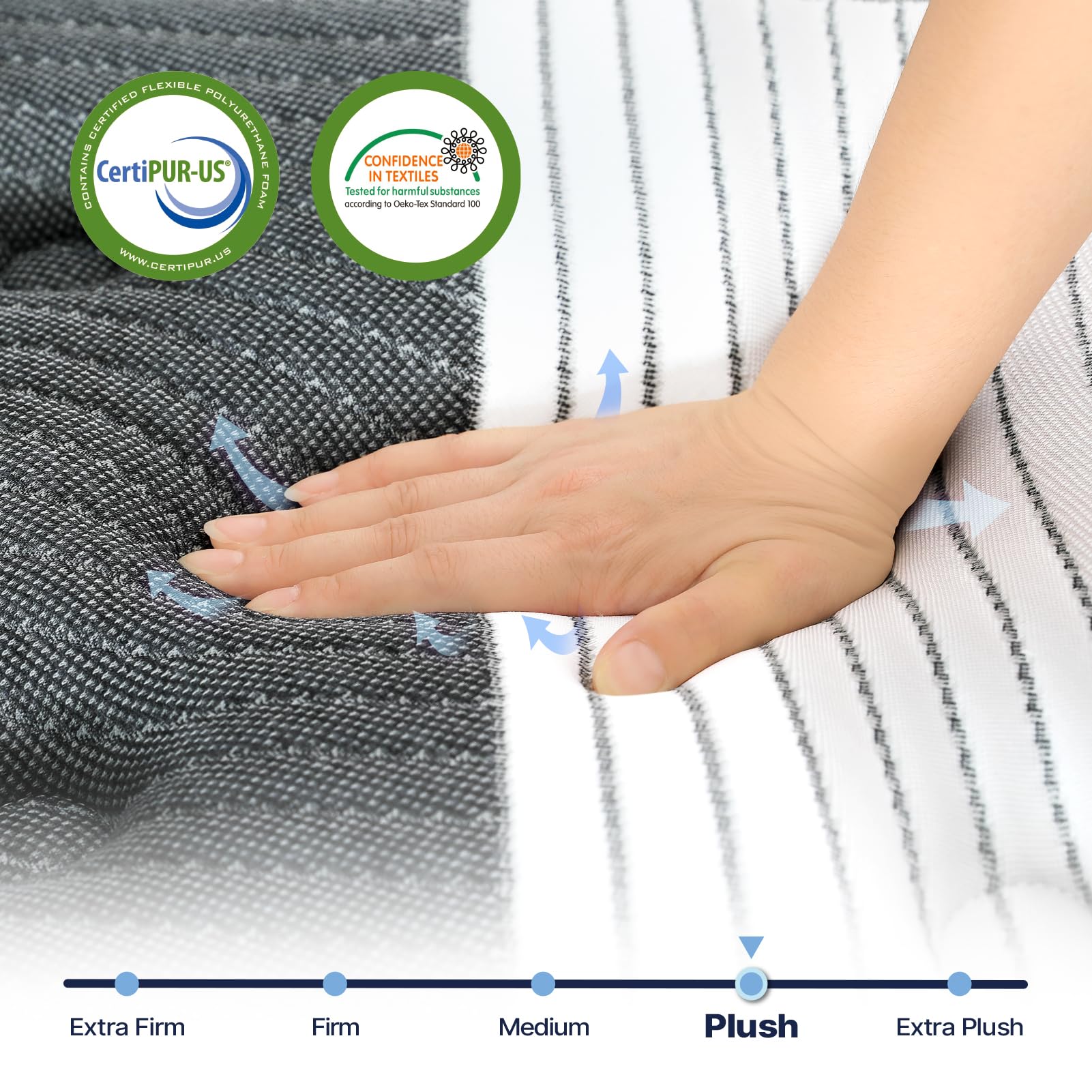- Peace of Mind : Prioritize your well-being with the Lechepus mattress. Our mattresses meet CertiPUR-US standards(Foam)and Oeko-Tex Standard 100. The fireproof layer is entirely without fiberglass, ensuring a health and sound sleep . This California King mattress come with a 100-night trial and 10-year support.