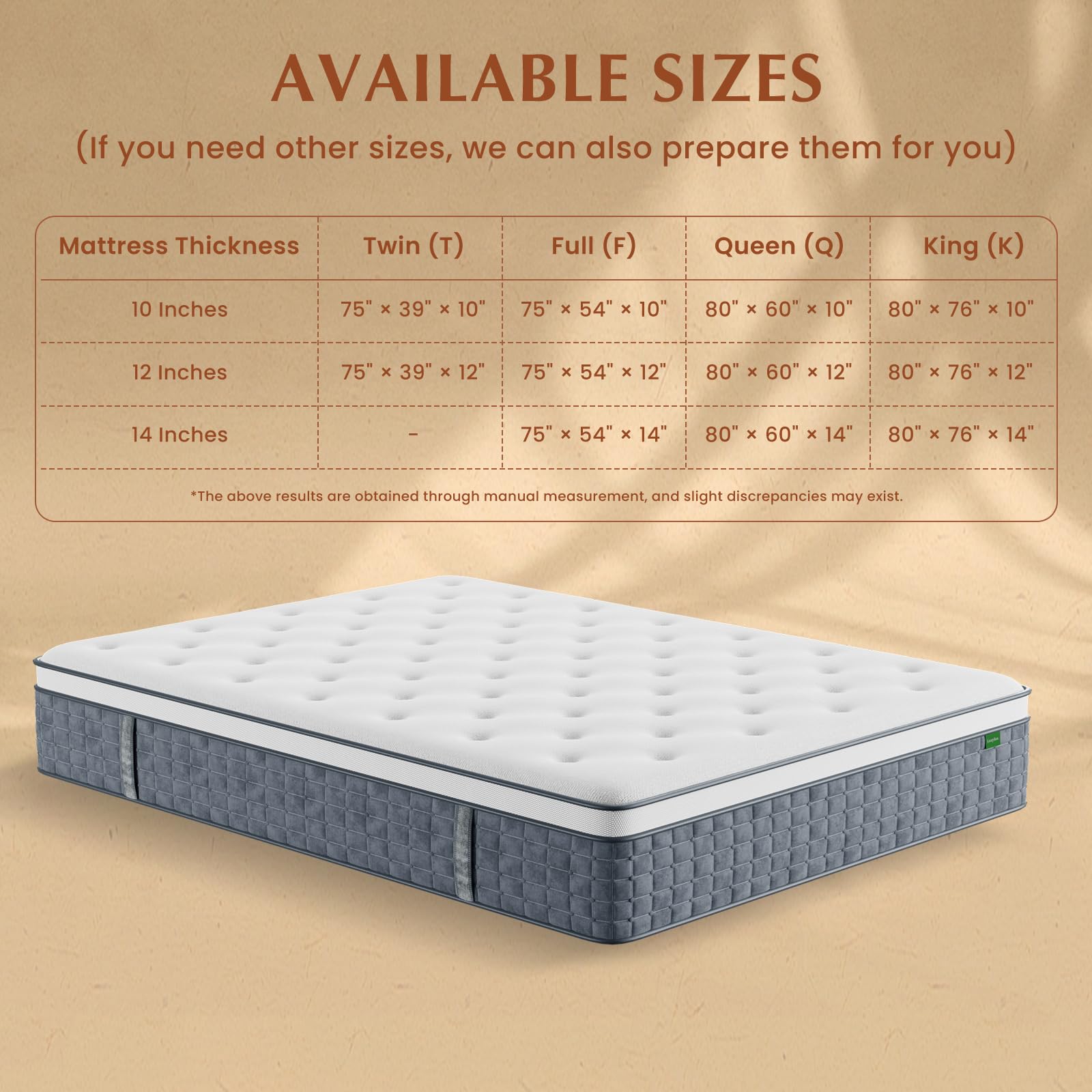 - 365 NIGHYS at HOME TRIAL: The Luxysea 12-inch twin Memory Foam Innerspring Mattress has been carefully designed to work well with traditional innerspring mattresses to modern platform beds, bunk beds, and even floor beds. Perhaps you're worried that our mattress twin size might not meet your expectations? Don't worry! We offer an industry-leading 365-day trial so you have plenty of time to fully experience it