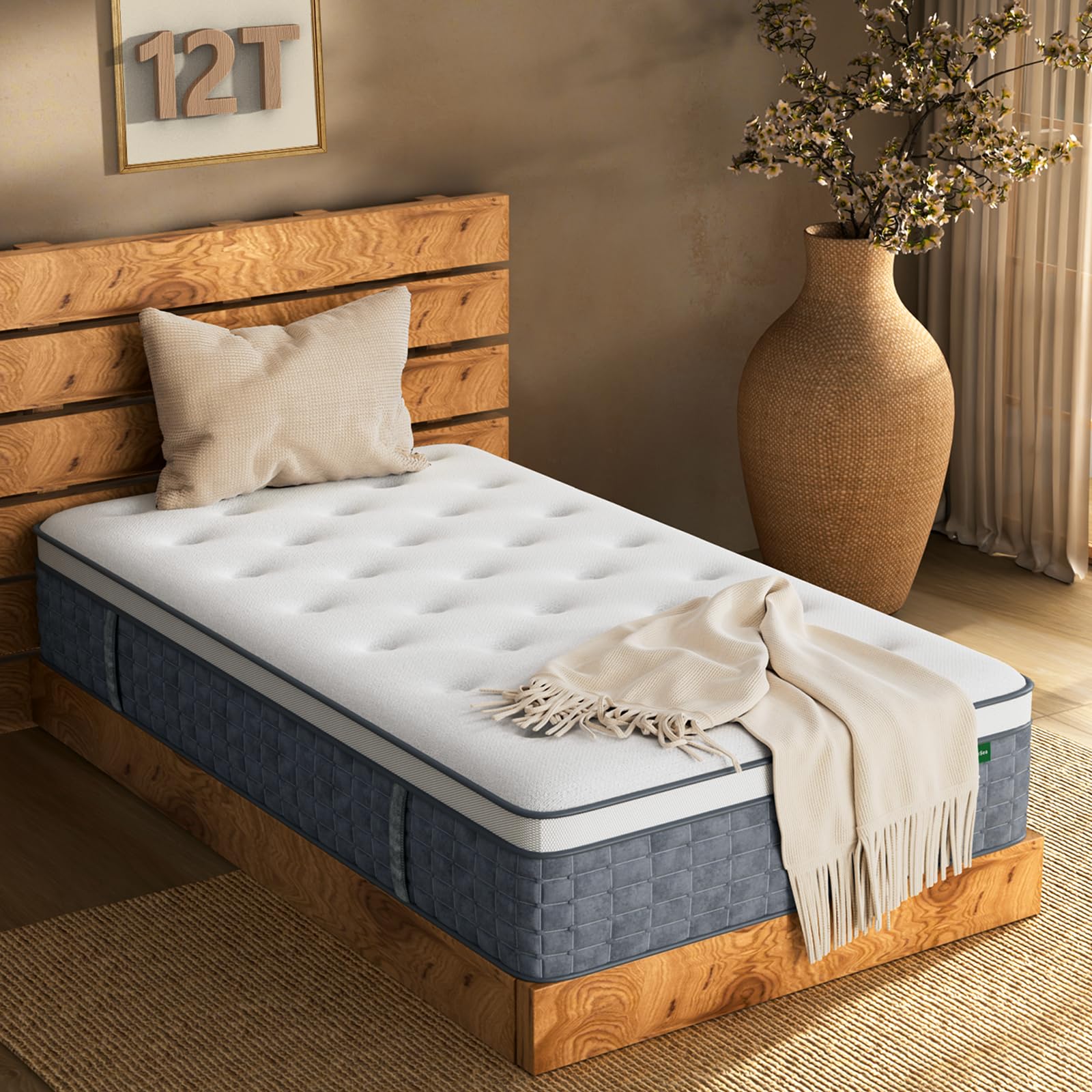 12 Inch Twin Size Hybrid Memory Foam Mattress in a Box, Pocket Springs for Motion Isolation & Silent Sleep, Medium Firm Bed with Pressure Relief