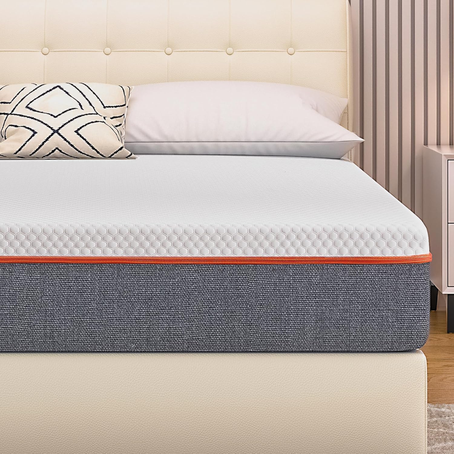 Details: Find your best mattress, Get a restful night’s sleep Enjoy a superior sleep experience with VECELO Gel Infused mattress in a box califonia king size. Featuring a unique two-layer foam system combining soft bamboo charcoal comfort foam with high-density support foam, Our memory foam mattress califonia king offers excellent comfort and support so you cannot feel springs. The gel-infused memory foam regulates temperature for a cool night's sleep, while the skin-friendly fabric surface promotes breathability. With medium-firm feel, this califonia king mattress cooling relieves pressure and ensures proper spinal alignment. Easy to clean with a removable cover, this medium firm mattress comes compressed for convenient setup and fits most bed frames. Say goodbye to restless nights.